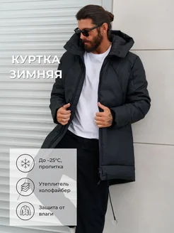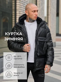 Мужская черная куртка короткая зимняя пуховик с капюшоном