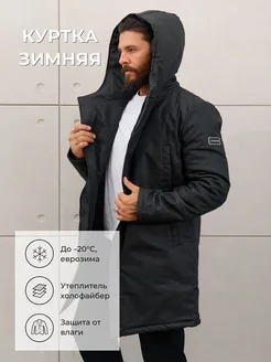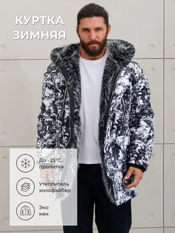 Мужская зимняя куртка с капюшоном из эко меха принт