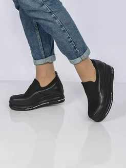 Слипоны на платформе натуральная кожа