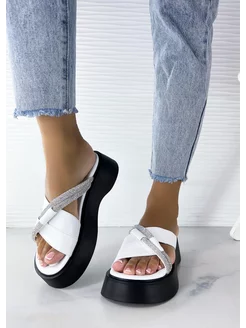 Сабо на платформе летние кожаные