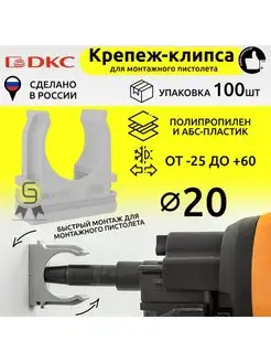 Клипса 100шт для гофры 20мм быстрый монтаж под пистолет