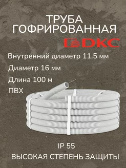 Труба ПВХ гофра для кабеля с протяжкой 16мм(бухта 100 м.)