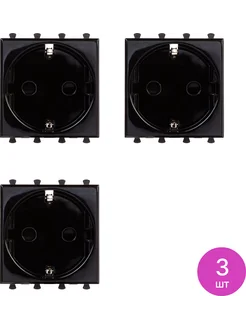 Розетка силовая ДКС Avanti черный квадрат 2P+E 4412002, 3 шт