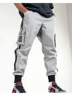 Брюки джоггеры карго осенние с карманами на резинке