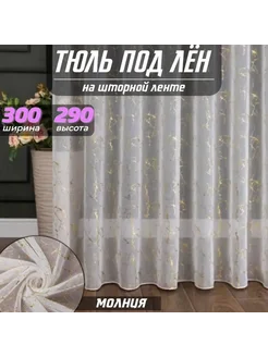 Тюль вуаль под лён в спальню и гостиную 600Х260 белая