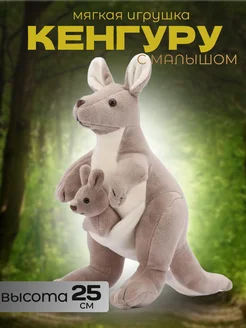 Мягкая игрушка плюшевая большая Кенгуру с малышом 25 см