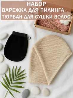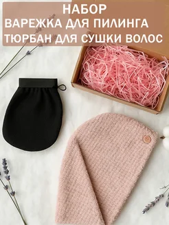 Варежка для пилинга,Тюрбан Для Волос. Набор для ванны и душа