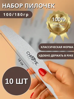Пилки для ногтей маникюра 100 180 грит - 10 шт