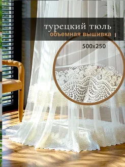 Тюль в гостиную грек сетка с вышивкой молочный 500х250