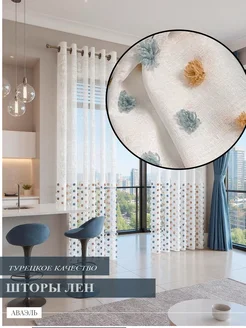 Тюль на люверсах лен с помпонами 2 шт 200х250