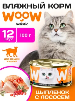 Влажный корм для кошек консервы цыплёнок и лосось 100гр 12шт
