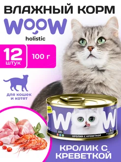 Влажный корм для кошек консервы кролик и креветка 100гр 12шт