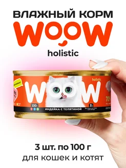 Влажный корм для кошек консервы индейка и телятина 100гр 3шт