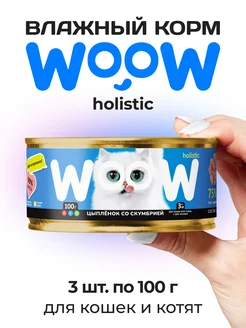 Влажный корм для кошек консервы цыплёнок скумбрия 100гр 3шт