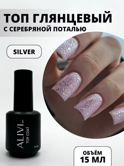 Топ для ногтей глянцевый с серебряной поталью