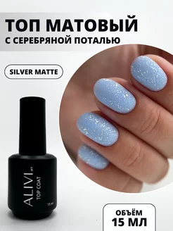 Топ для ногтей матовый с серебряной поталью