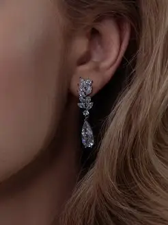 Серьги гвоздики, циркон, фианит, ювелирная бижутерия