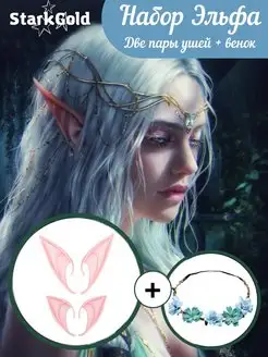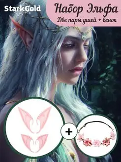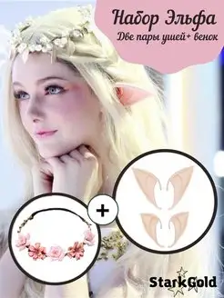 Мягкие телесные эльфийские уши и украшение венок на голову