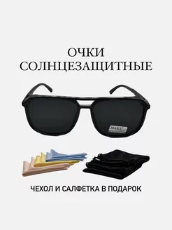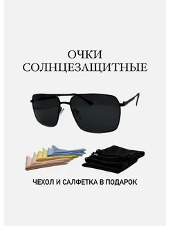 Очки солнцезащитные прямоугольные модные круглые черные