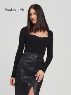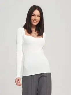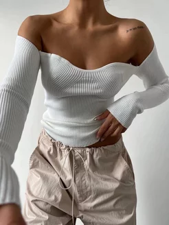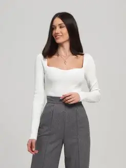Лонгслив нарядный белый с вырезом обтягивающий