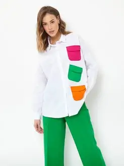 Рубашка оверсайз летняя белая хлопок с принтом