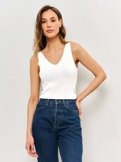 Трикотажный топ с V-вырезом в офис под пиджак