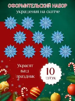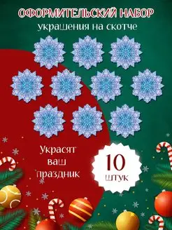 Набор плакатов украшений Снежинки Новый год 10 шт