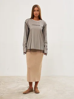 Лонгслив нарядный оверсайз футболка с длинным рукавом