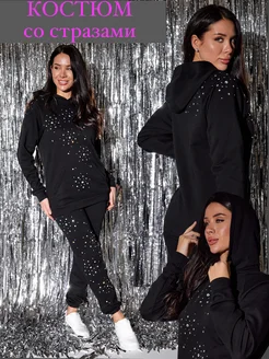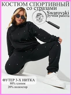 Спортивный костюм женский оверсайз со стразами без начёса