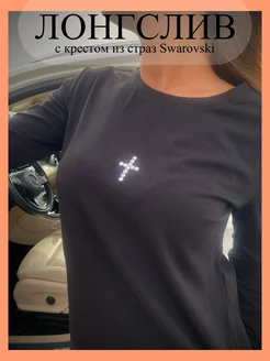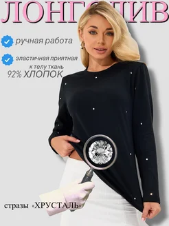 Лонгслив женский оверсайз со стразами
