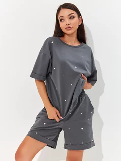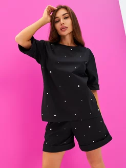 Костюм с шортами в стразах