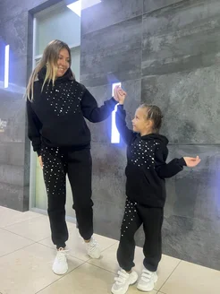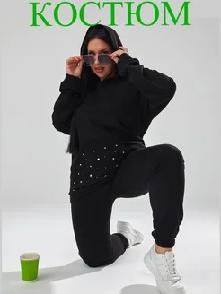 Спортивный костюм теплый оверсайз со стразами