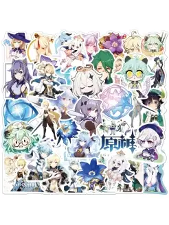 Наклейки Геншин Импакт водостойкие 50шт (3-6см)