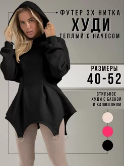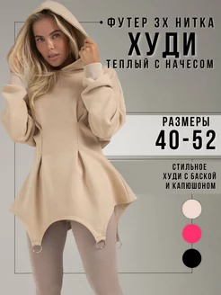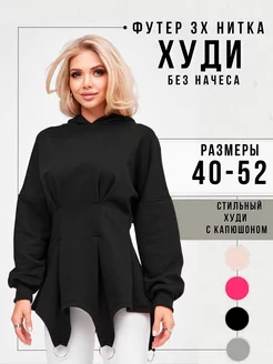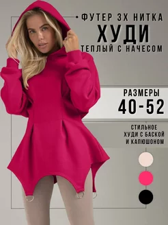 Худи оверсайз с капюшоном теплое с начесом с баской
