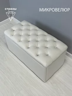 Пуфик 75 (Ткань, Стразы) с ящиком, банкетка для прихожей