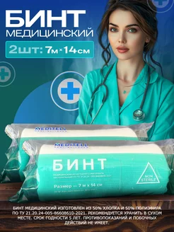 Бинт медицинский 7 м на 14 см. 2 штуки