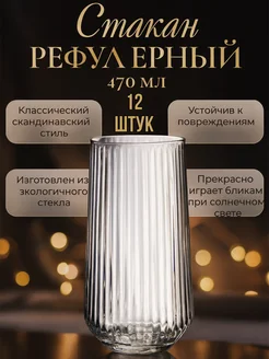 Стеклянные низкие стаканы 470 мл набор из 12 штук