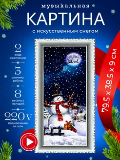 Новогодняя музыкальная настенная картина со снегом и светом