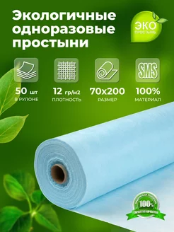 Простыни одноразовые в рулоне 70 х 200 см - 50 шт