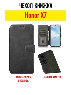 Комплект чехол-книжка для Honor X7 и защитное стекло