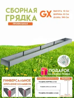 Готовая оцинкованная грядка GX 0,32x3,8 метра высота 15 см