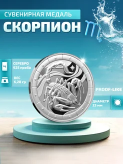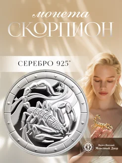 Серебряная монета Скорпион знак зодиака 925 Талисман