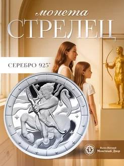 Серебряная монета Стрелец знак зодиака 925 Талисман