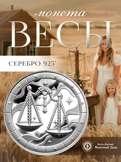 Серебряная монета Весы знак зодиака 925 подарок талисман