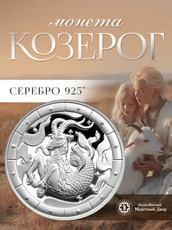 Серебряная монета Козерог знак зодиака 925 Талисман