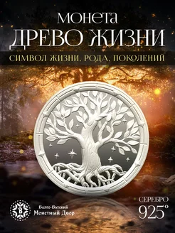 Серебряная монета оберег Древо Жизни 925 амулет для женщин
