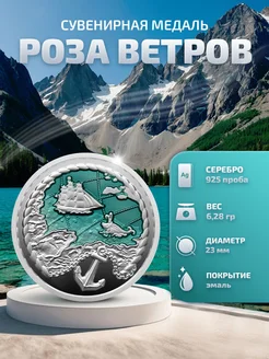 Серебряная монета "Роза ветров" Талисман удачи мужчине