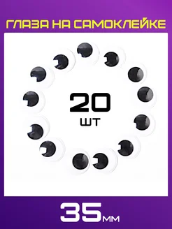 Самоклеящиеся глаза для поделок 20 штук черно-белые