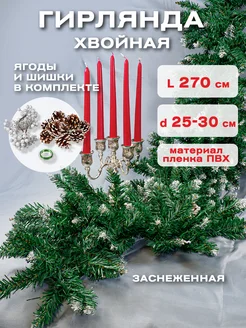 Гирлянда еловая новогодняя, 270 см с шишками и ягодами