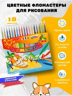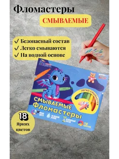 Фломастеры детские смываемые «Фабрика цвета» 18 цветов